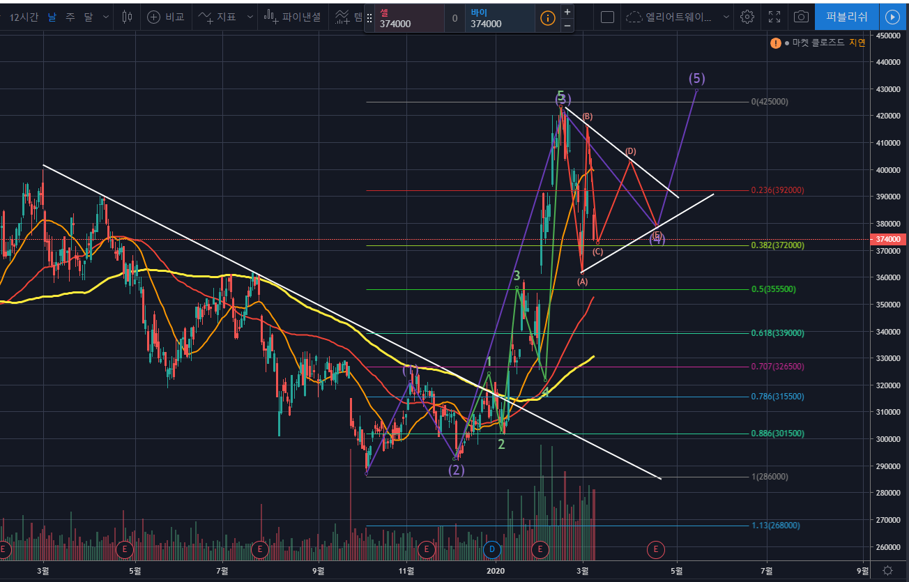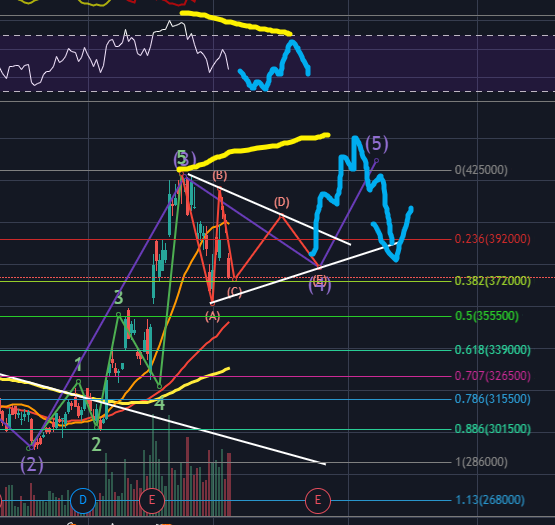 이것은 추후 추적해가기로하고, 지금은 4파 삼각수렴 후 상승하는 것에 집중하면 될 것 같습니다.