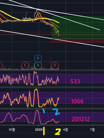 캔들, 5이평~120이평, 스토캐스틱 533/1066/201212를 연관하여 설명을 잘해주고 있습니다.