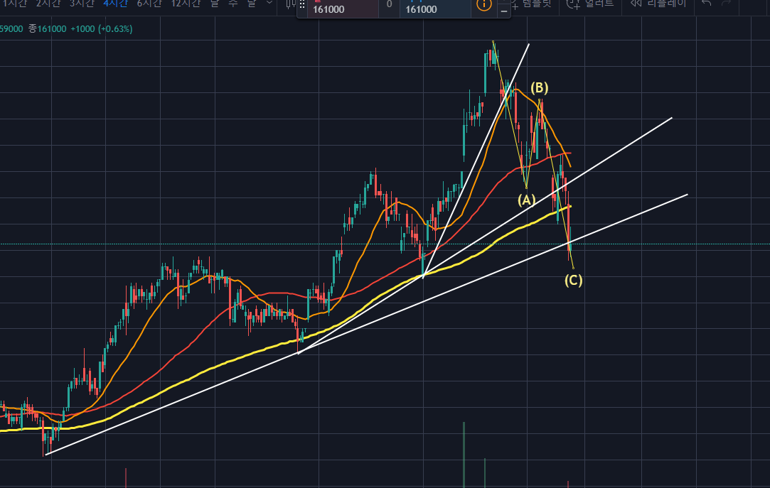 ABC가 1:1자리가 나오면서 조정이 멈췄네요.