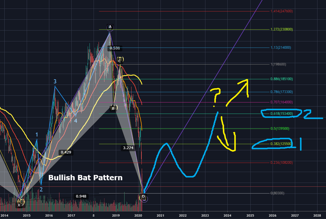 좌측 매수 가틀리 패턴때와 마찬가지로, 현재위치의 매수 박쥐 패턴도 큰 반등이 일어날 수 있어보이네요.