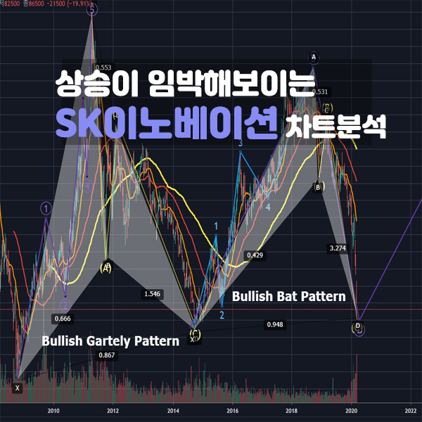 안녕하세요. sk이노베이션 주가 역시 엄청난 하락을 보이고 있는데요. sk이노베이션 주식의 차트를 보고 분석해보니 두 가지 하모닉 패턴이 보이는 것을 발견하였습니다.