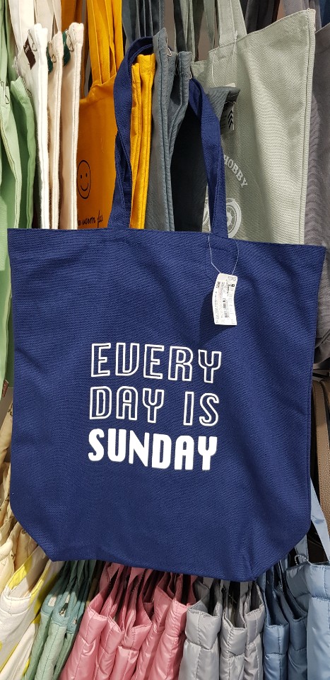 매번 장을 보러갈 때 맨손으로가서 비닐봉투를 샀던 기억이 나서 에코백을 고르게 되었습니다. 그냥 지나다가 살 생각은 없었지만, 보자마자 마음에 드는 것이 있더군요.