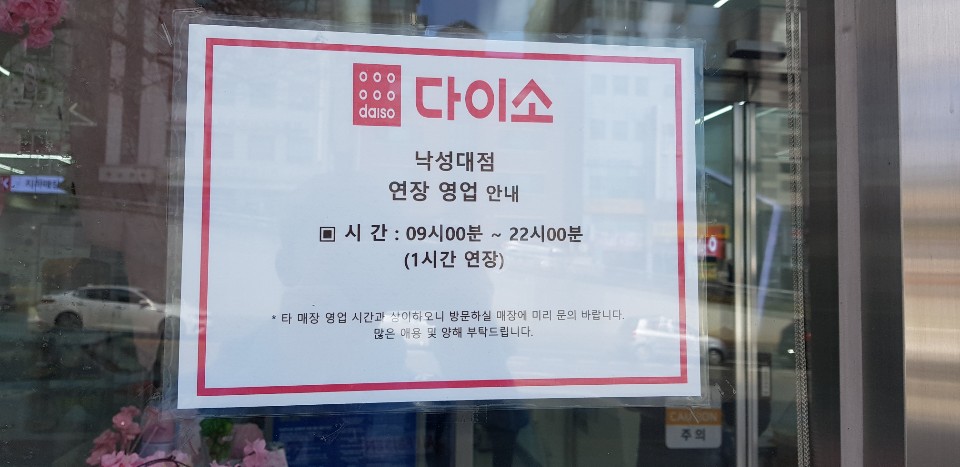낙성대역 다이소는 오전 09시부터 오후 22시까지 운영합니다. 1시간 연장 운영한다고 하는데, 전에 봤을 때는 오전 10시부터 오후 22시까지 운영했던 것 같습니다.