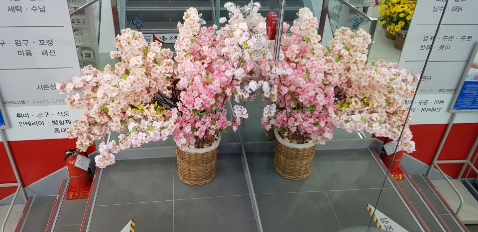 지하 1층에 액자를 사러 내려갔는데, 조화들이지만 너무 예뻐서 찍게 되었네요. 뭔가 지하는 화사한 느낌이었습니다.