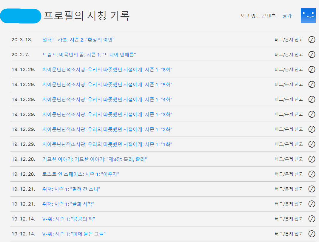 먼저 설명한 PC버전 시청기록 삭제에서 얼터드 카본을 삭제한 후 앱의 시청기록삭제를 진행하니