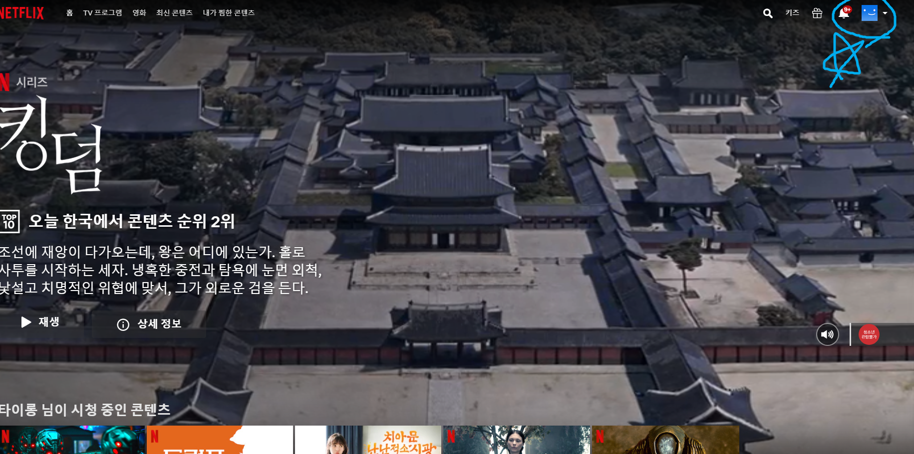 넷플릭스에서 킹덤이 메인에 나오네요. 오늘 밤은 맥주를 마시며 킹덤을 봐야겠습니다.