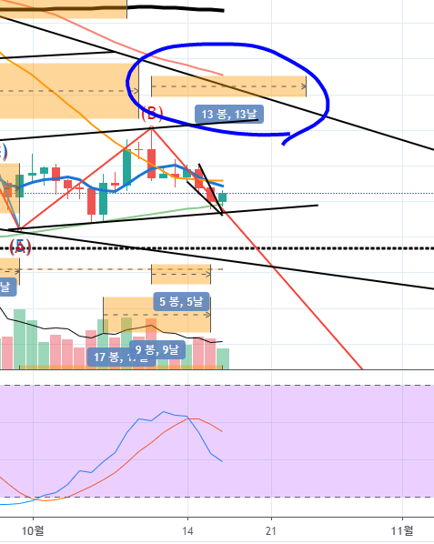일목균형표로 8.8k 이후 13일째 변화일이 10월 24일이니 이때까지의 상승을 기대할 수도 있어 보입니다.
