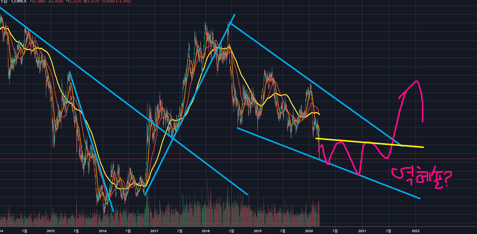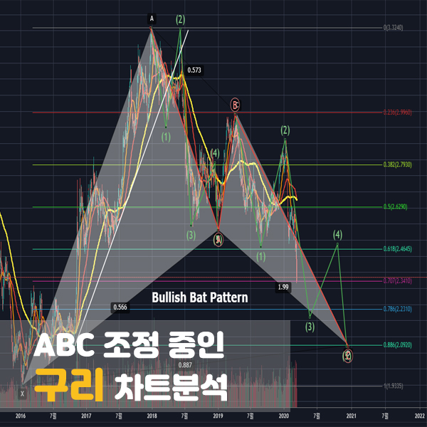 위의 차트를 보면, 현재 구리의 가격이 ABC 조정파동 진행 중으로 보입니다.