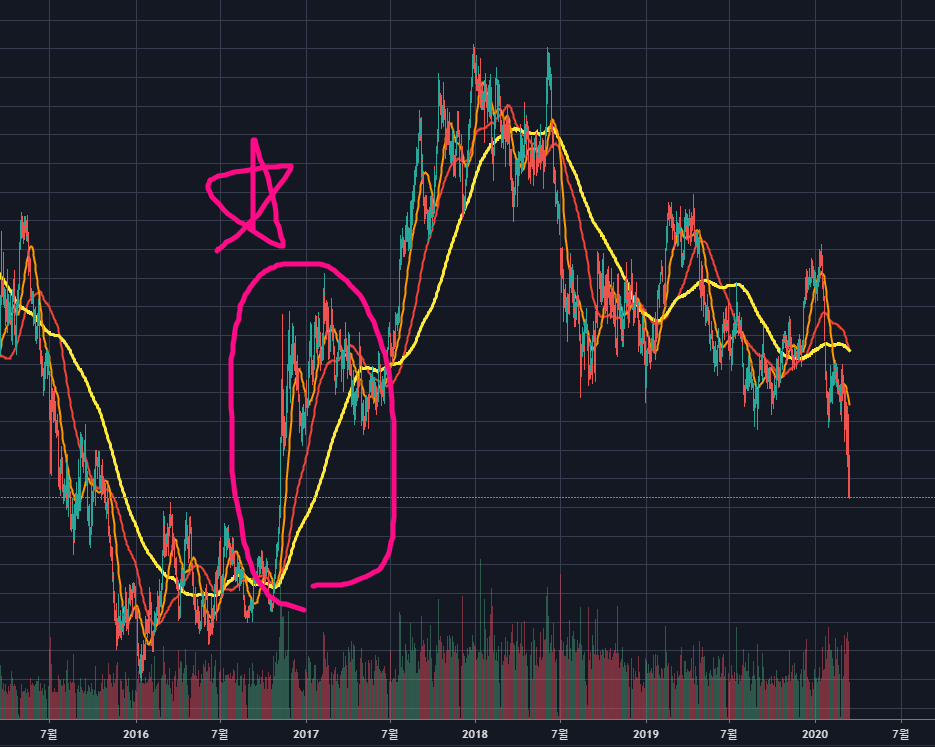 2020/03/15 - [트레이딩 이야기/1) 기술적 분석 방법(차트공부)] - 이동평균선의 황금선과 생명선 등 매매방법