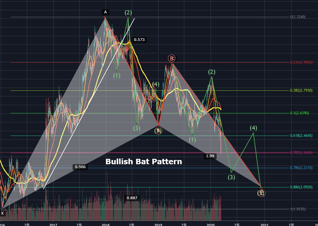 Bat Pattern의 0.886(XA) 인 2.0920정도의 PRZ에서 반등한다면 적어도 2.6290정도까지는 반등하지 않을까 싶네요.