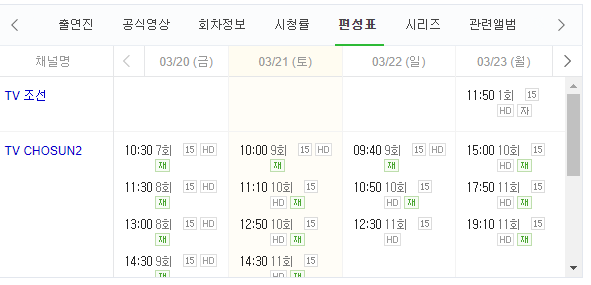 이렇게 주말 및 월요일동안 9회는 1번, 10회는 4번, 11회는 5번 재방송을 하게 되네요.