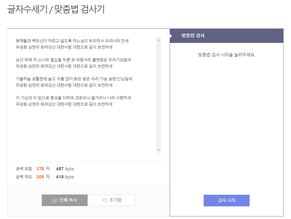 여기를 클릭하면 글자수 세기와 맞춤법 검사가 가능합니다.