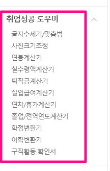 이외에도 사진크기 조정, 연봉 계산기, 실수령액 계산기, 퇴직금 계산기 등