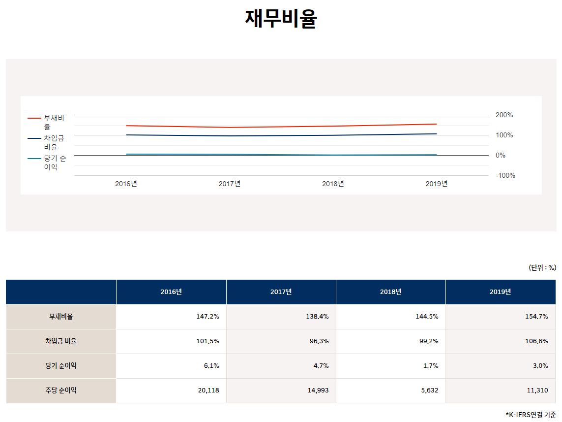 위의 재무비율을 보더라도, 부채비율이 계속해서 증가하고 있는 것을 볼 수 있습니다.