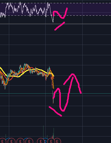 위의 차트를 보면, 일봉차트에서 RSI가 과매도권에 진입한 것을 볼 수 있습니다.