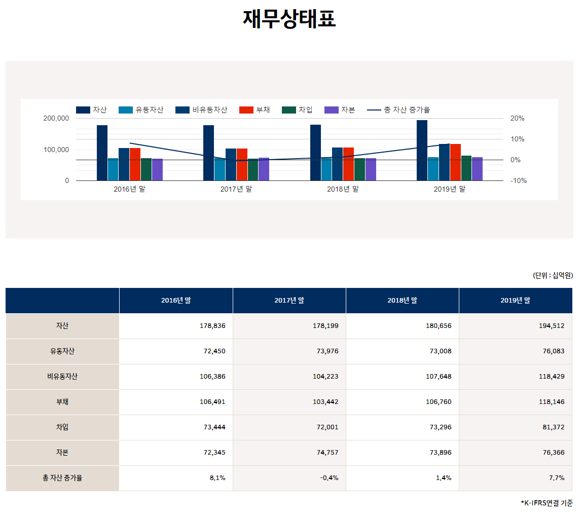 재무상태표를 보면, 총자산 증가율에 비해 부채증가율이 더 많은 것으로 보이네요.
