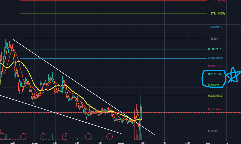 저 자리는 엘리엇웨이브 2파 조정의 C파동 위치가 될 것이며, 저곳부터 엄청난 상승이 있을 것 같네요.