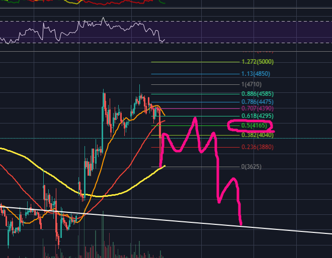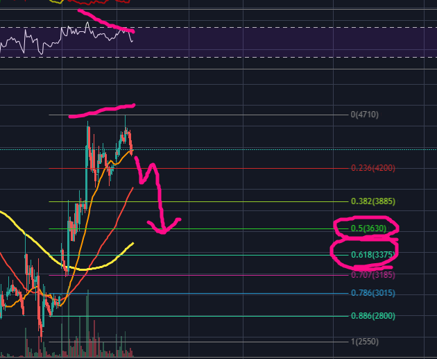 더 하락하면 피보나치 되돌림 0.618까지 하락할 것을 분석하였었습니다.