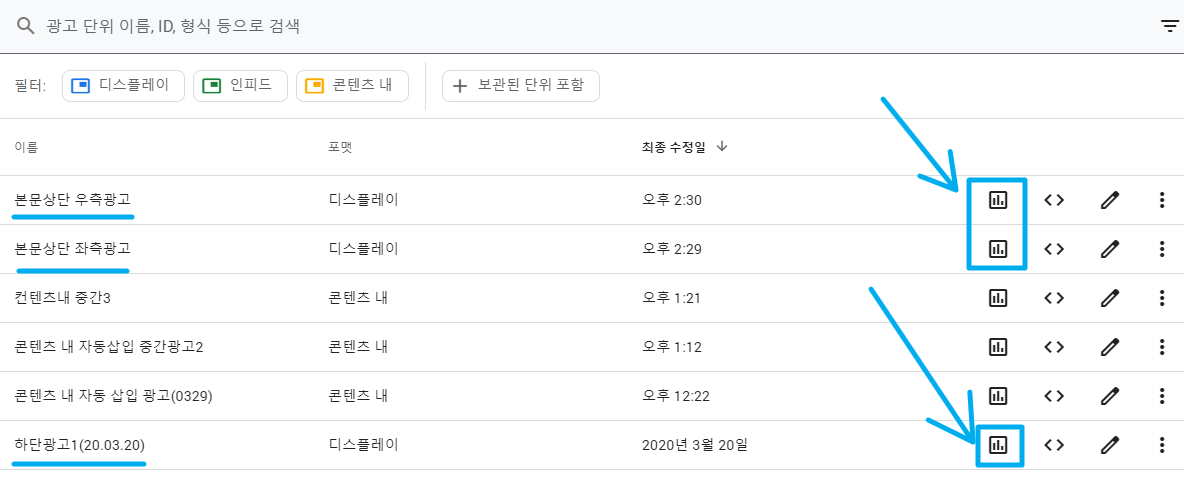 변경하실 때는 위와 같이 보고서를 참고하시여 여러 광고단위와 배치를 설정해보세요!