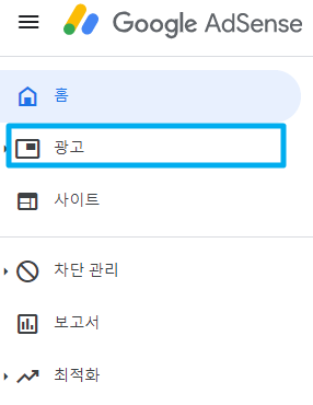 위와 같이 '홈' 아래 '광고'라는 것이 있습니다. 이것을 클릭해줍니다.