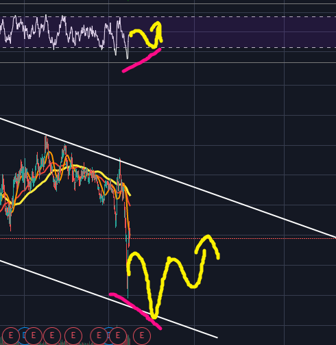 제가 봤을 때는 하락채널링의 하단선에 닿는 것을 확인하고 매수하는 것이 좋아보입니다.