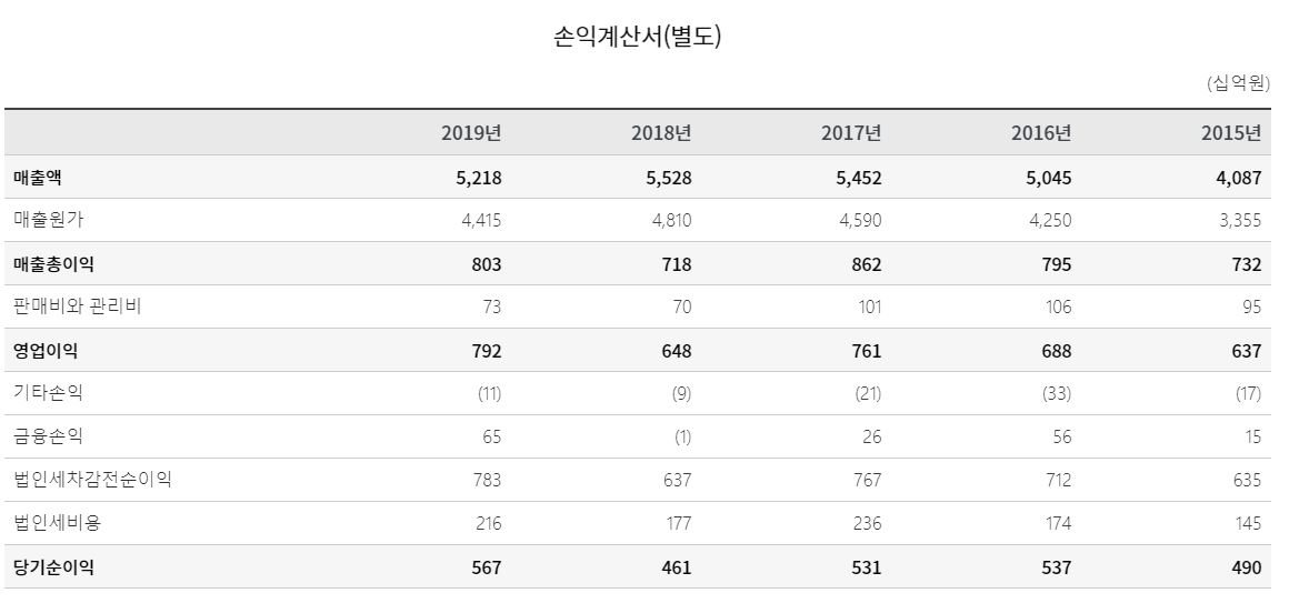 매출액은 감소하였는데, 매출총이익과 영업이익, 당시순이익이 모두 증가하였네요.