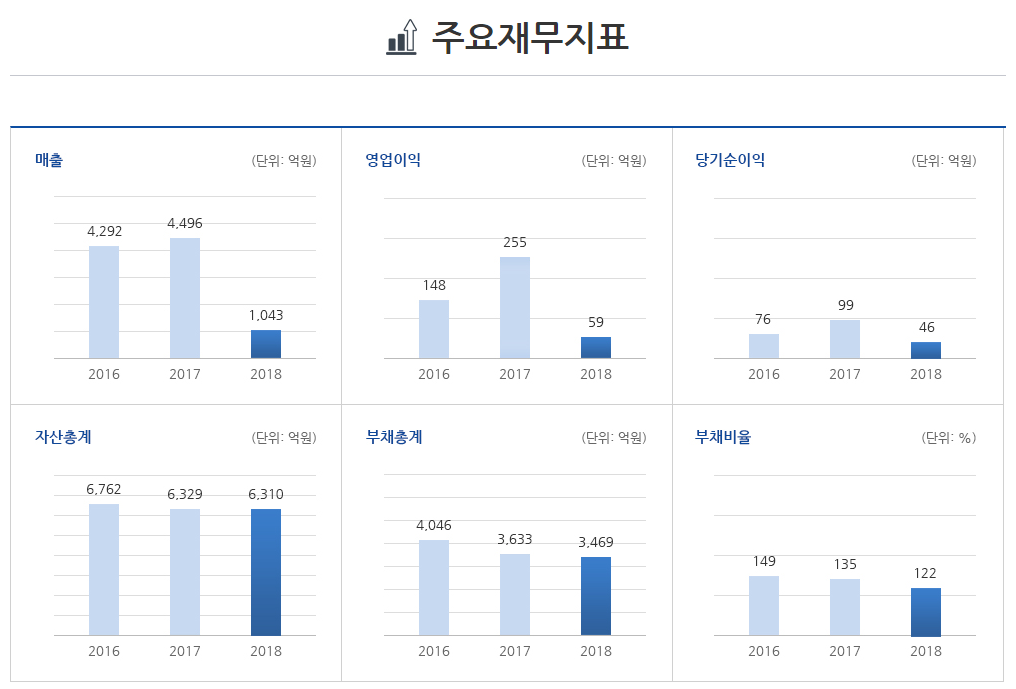 위의 내용을 살펴보면, 자산이나 부채는 거의 유지되었으나 매출이 급격히 갑소하였습니다. 77%나 감소하였다니 믿기지 않네요. 그리고 부채가 자산 중 차지하는 비중이 81%나 되네요.
