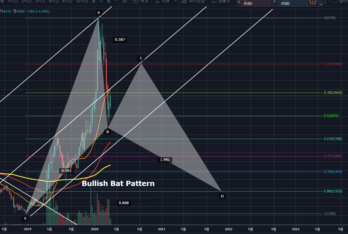 Bullish Bat Pattern(매수 박쥐 패턴)으로 나오지 않을까 싶습니다.