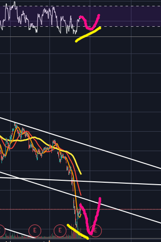 엘리엇웨이브 관점이나 하모닉패턴, RSI다이버전스, 스토캐스틱을 보았을 때 손익비가 큰 자리가 임박해 있네요.