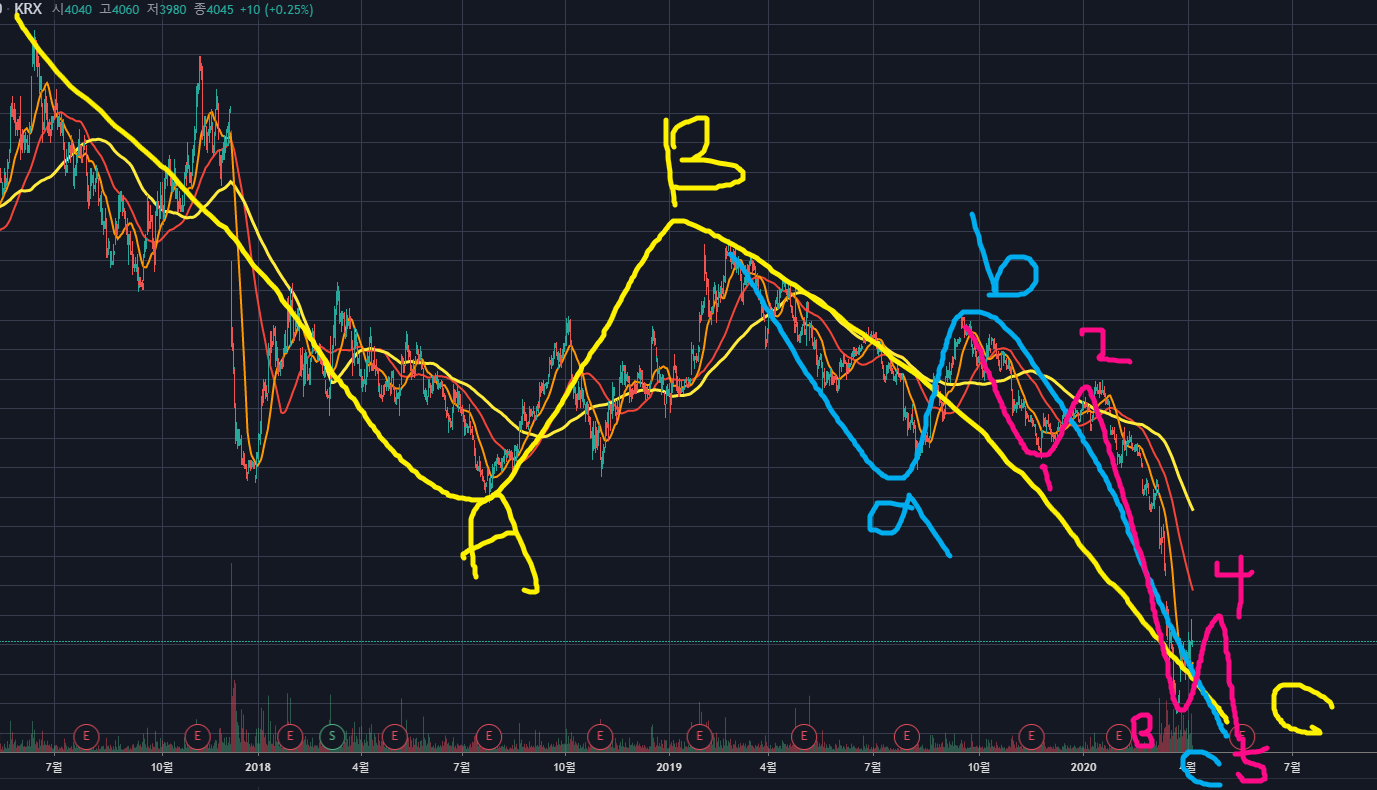 그리고 노란색 파동카운팅대로 C파동이 마무리 됐다면, 적어도 노란색 B파동 정도까지는 상승할 여력이 있어보입니다.