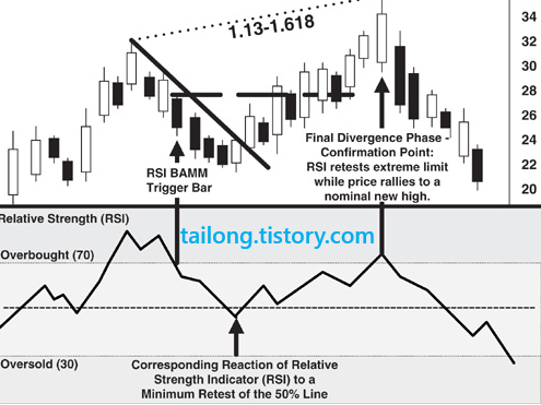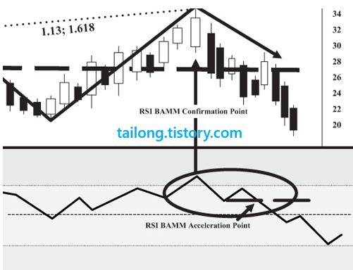 6. RSI BAMM Confirmation Point : 1.13~1.618 / 2.0을 초과하면 안됨.