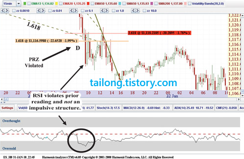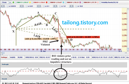 스캇은 RSI를 적합한 방법이라 여기면서도 여전히 하모닉 패턴의 고유 PRZ(Potential Reversal Zones)을 알 수 있는 지표를 찾고 있다고 합니다.