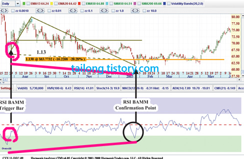 Chevron-Texaco의 예시는 일봉차트에서 훌륭한 RSI BAMM의 적용을 보여줍니다.