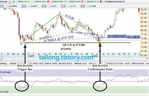 국내에서 하모닉 패턴을 사용하는 분들이 적고, 하모닉 패턴을 알더라도 RSI BAMM을 아는 분은 거의 없을 것 같습니다.