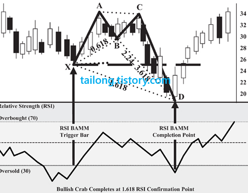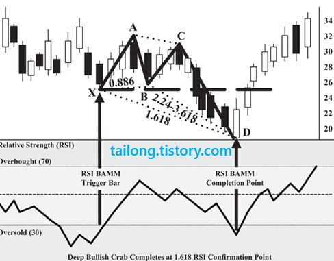 Deep Bullish Crab Pattern at RSI BAMM에서도 그림을 보시면 충분히 이해가 가실 것 같네요.