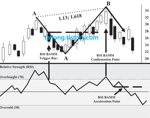 6. RSI BAMM Confirmation Point : 1.13~1.618 / 2.0을 초과하면 안됨.