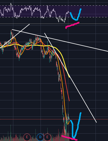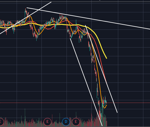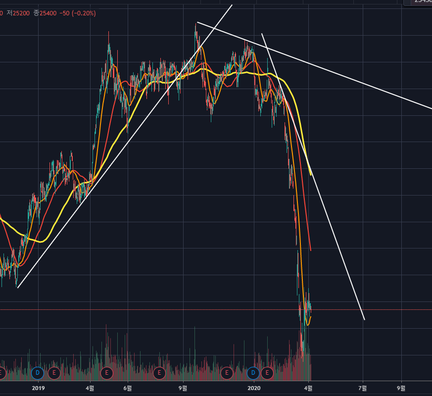 우선은 이렇다할 패턴이 보이지 않지만, 위와 같이 하락채널을 형성하며 하락하였다고도 볼 수 있어보입니다.