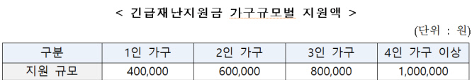 이외 2인가구는 60만원, 3인가구는 80만원을 수령할 수 있으니 본인이 속한 건강보험료 구간과 지원받을 수 있는 금액을 확인하시어 신청하시길 바랍니다.