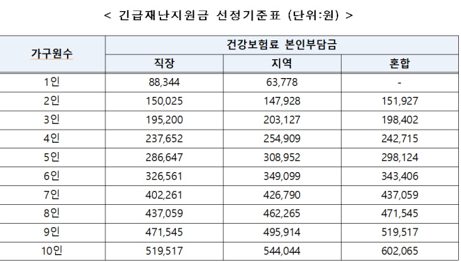 정부는 긴금재난지원금 신청한 가구원에게 부과된 올해 3월 기준 본임부담 건강보혐료를 모두 합산해 그 금액이 소득 하위 70%에 해당하면 지원해주기로 정하였습니다.