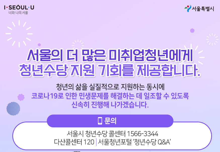 청년의 공정한 출발을 보장하기 위한 '서울청년수당' 2020년 1차 참여자를 모집 중입니다.