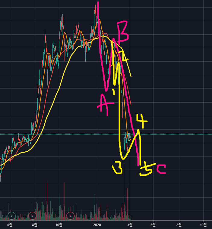 이후 C-5파 하락하게 된다면 상승할 수 있겠네요. ABC의 한 파동의 끝이기 때문에, 상승한다면 많은 상승을 할 것 같습니다.