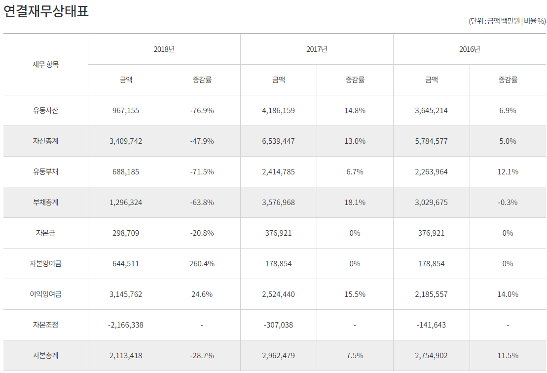 18년에 자산과 부채가 급격하게 감소하였네요.