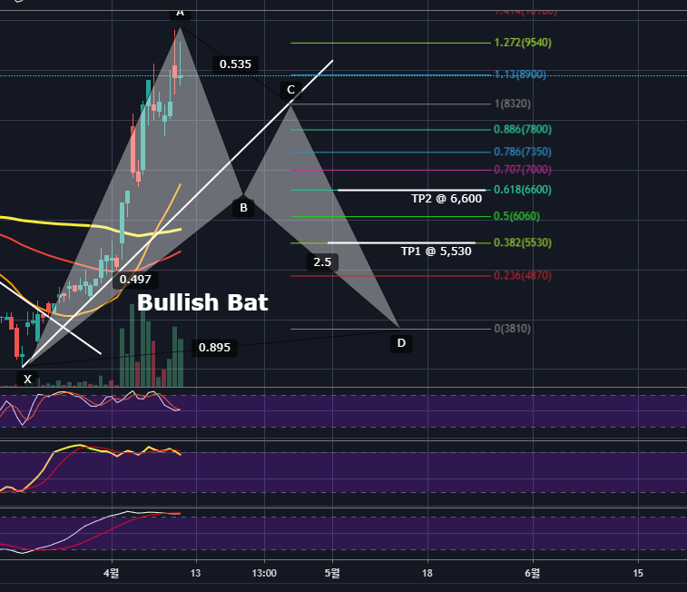 2019/11/03 - [트레이딩 이야기/1) 기술적 분석 방법(차트공부)] - 하모닉 패턴 중 박쥐 패턴(Bat Pattern)에 대해 알아보자