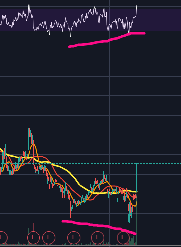 이후 급등을 하게 된 후 아직 일반하락다이버전스나 특별한 하락시그널이 나오지 않은 상태이지에, RSI로 볼 때 더 상승할 여력이 있어보입니다.
