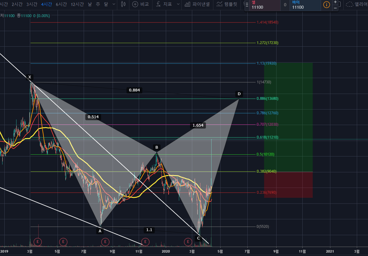 단타로 진입하는 것이 아니라면, 현재구간부터 0.886(XA)까지의 주식 매수는 위험할 수 있어보입니다.