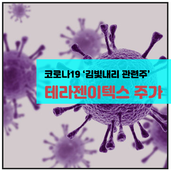 테라젠이텍스는 신종 코로나바이러스 감염증(코로나19) 리보핵산(RNA) 전사체 분석 연구에 참여했다는 소식이 알려져 정부지원에 대한 기대감에 매수세가 몰린 것으로 분석된다고 하네요. 또한 김빛내리 관련주로도 거론되고 있습니다.