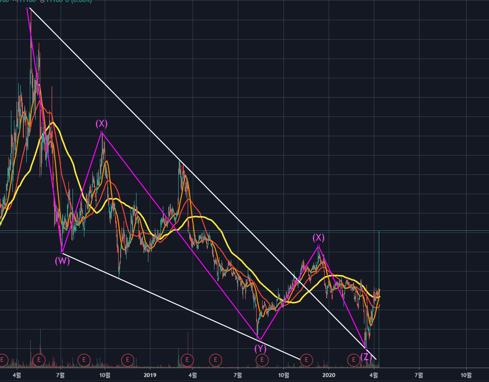 주가가 노란색 120이평 위에서 조정을 마무리하고 이평에 올라탄 후 상승한다면 20,60,120이평의 정배열이 일어나면서 아주 큰 급등이 나올 것 같습니다. 아직도 발표되지 않은 호재가 많이 숨어있는 것 같네요.