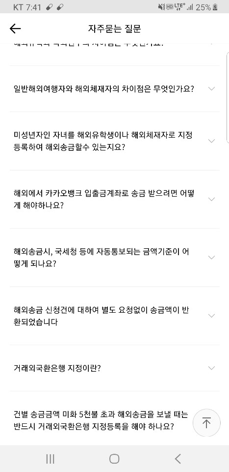 여기에서 해외에서 카카오뱅크 입출금 계좌로 송금 받으려면 어떻게 해야 하나요?를 클릭해주면 아래와 같은 문구가 나옵니다.