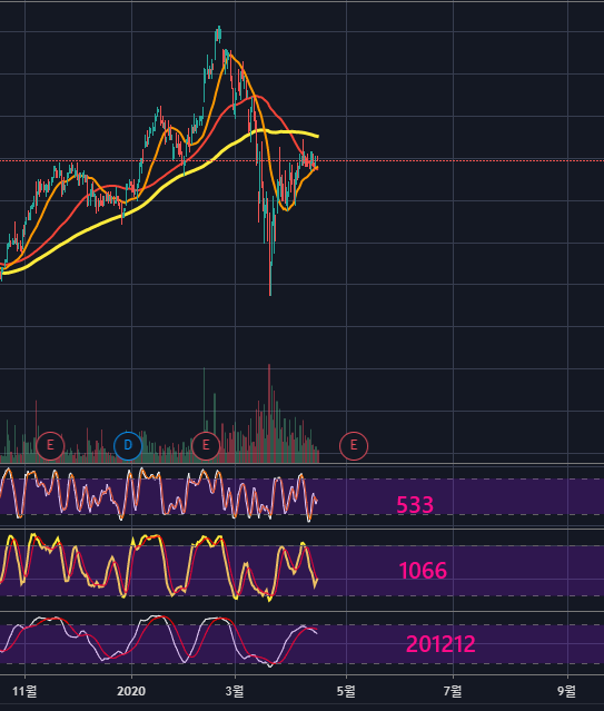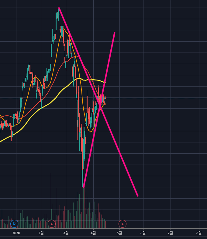 지금 상승은 하락을 위한 반등으로 보고 있기에 위험해보이네요. 20년 하반기쯤 저 강력한 하락이 나온 후를 노려봄이 어떨까싶습니다.