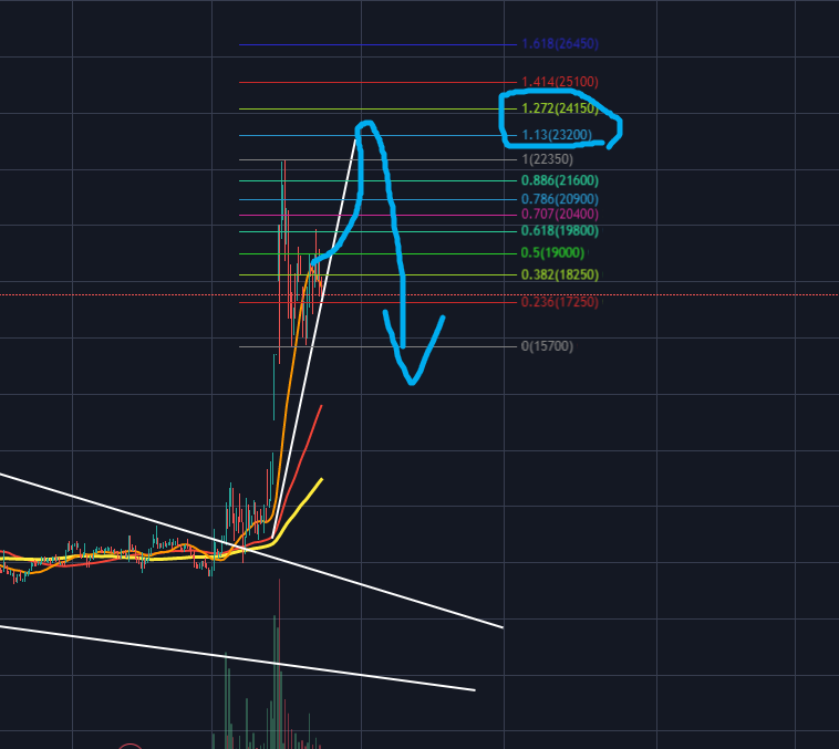 지난분석대로 피보나치 1.272 익스텍션 부근까지 상승 후 조정을 하고 있습니다.